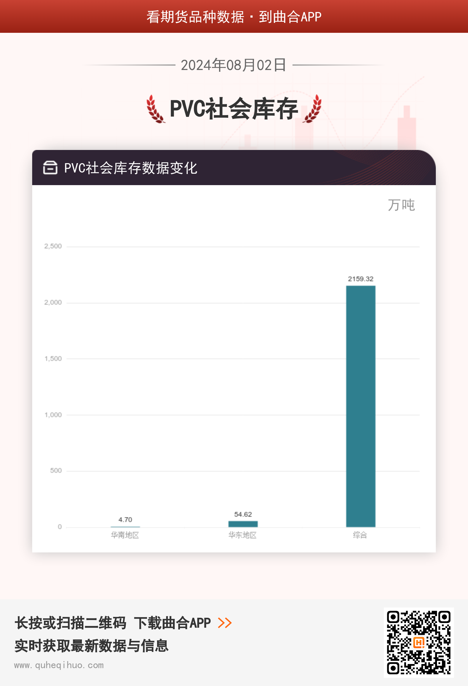 截止8月2日,华南地区库存为4.70万吨,较上一周减少0.17万吨,环比跌幅3.49%。华东地区库存为54.62万吨,较上一周减少0.32万吨,环比跌幅0.58%。综合库存为2159.32万吨,较上一周减少0.49万吨,环比跌幅0.02%。