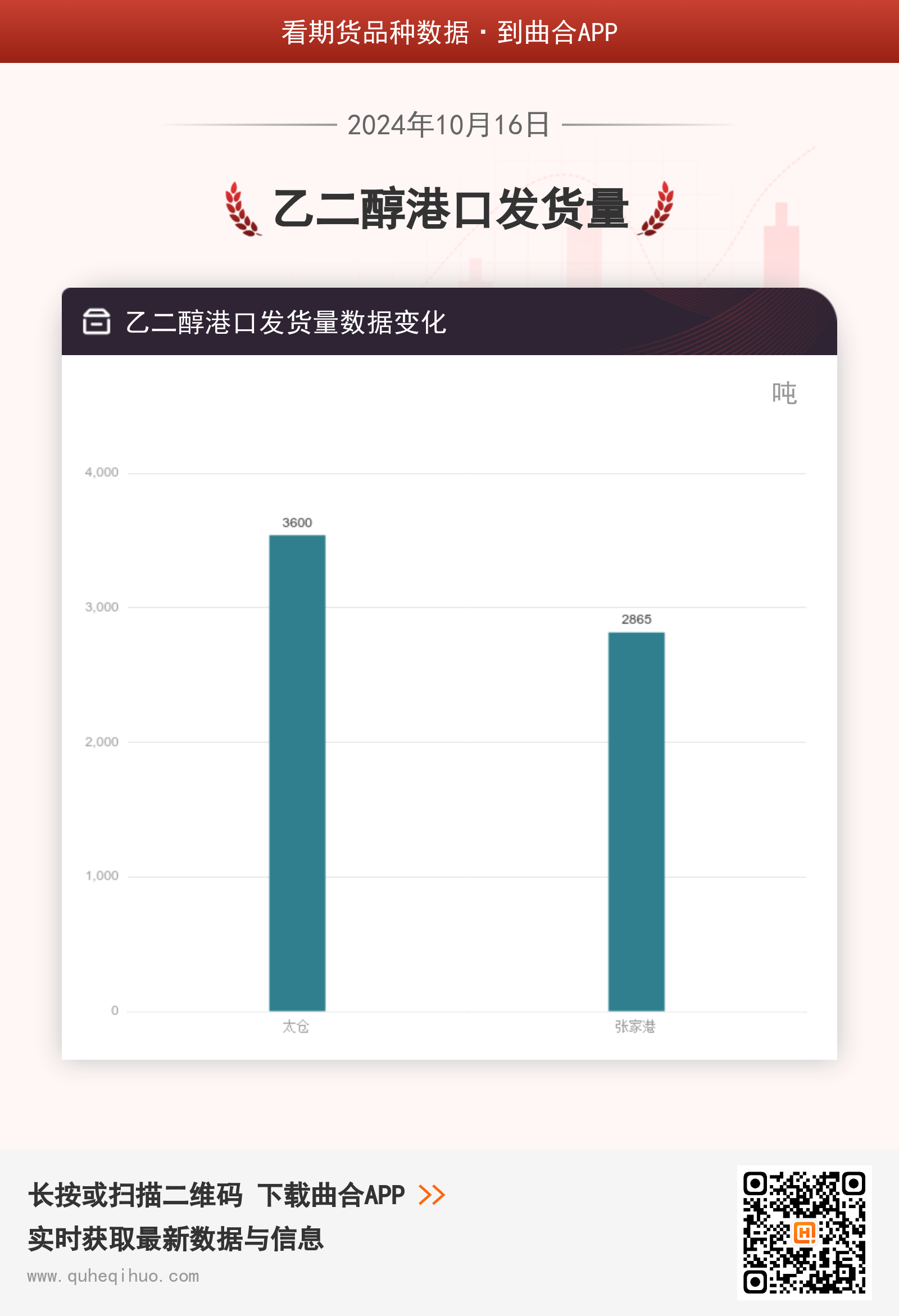 截止10月16日,太仓发货 3600吨,较上一日增加1100吨,环比涨幅44.00%。张家港发货 2865吨,较上一日减少1457吨,环比跌幅33.71%。