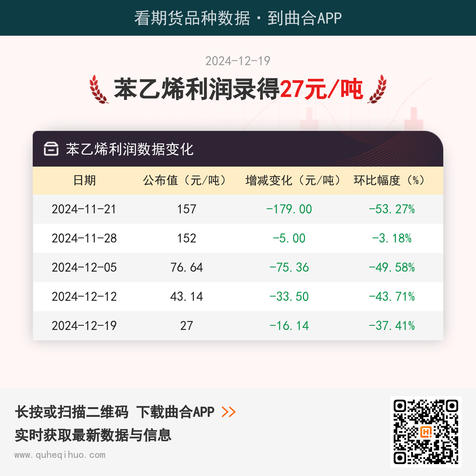近期苯乙烯利润数据变化如下: