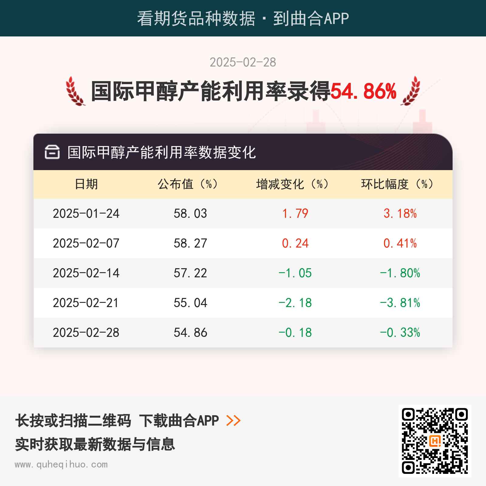 近期国际甲醇产能利用率数据变化如下: