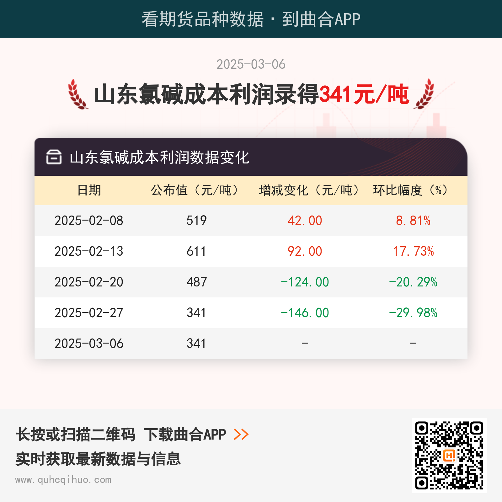 截止3月6日,山东氯碱成本利润数据录得 341元/吨,较上一周减少0元/吨,环比跌幅0.00%。