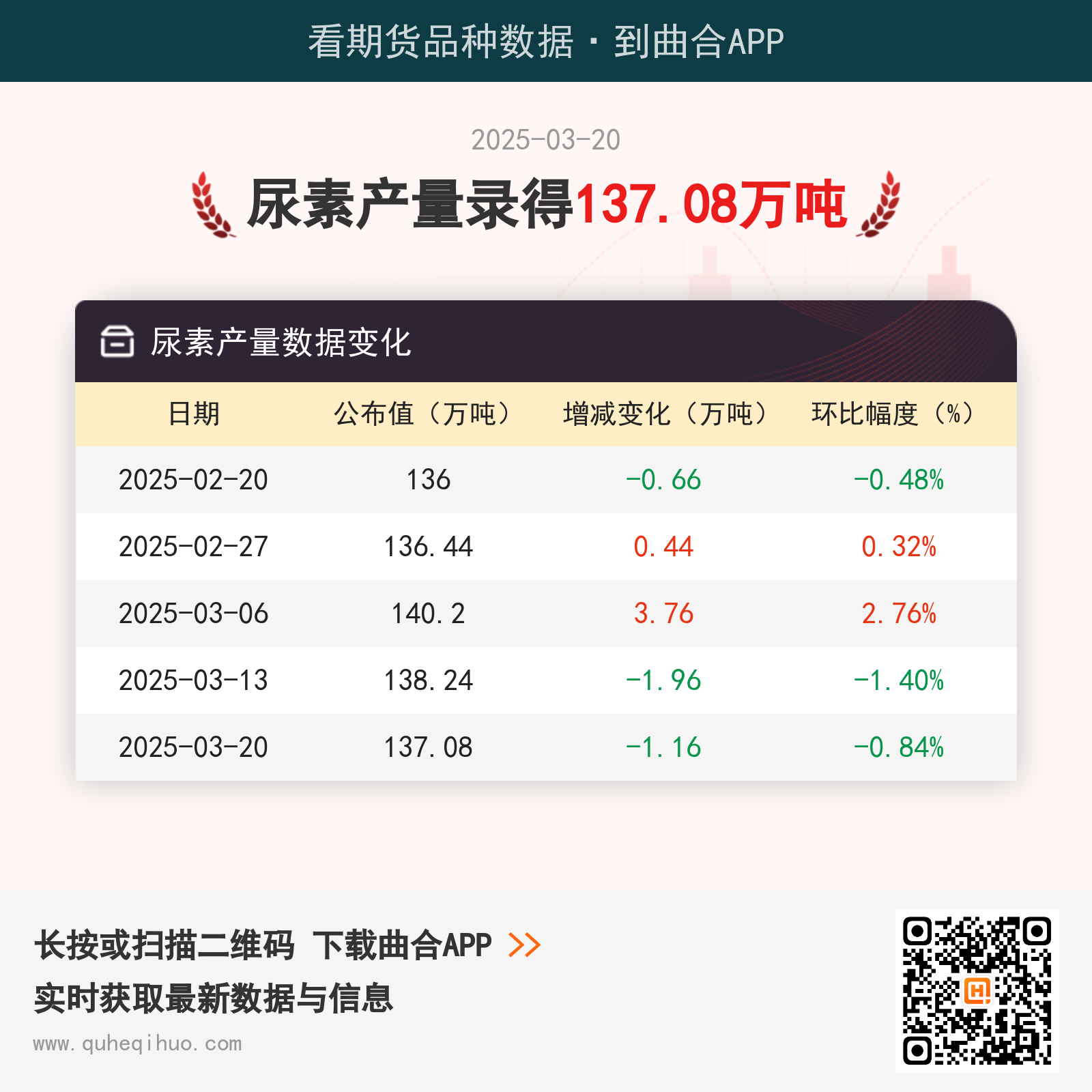近期尿素产量数据变化如下:
